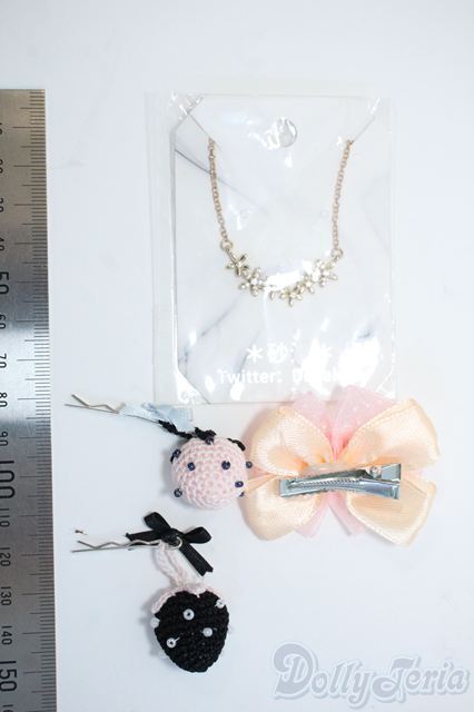 苺ヘアピン2点・リボンヘアクリップ・ネックレス、特に難なし / |